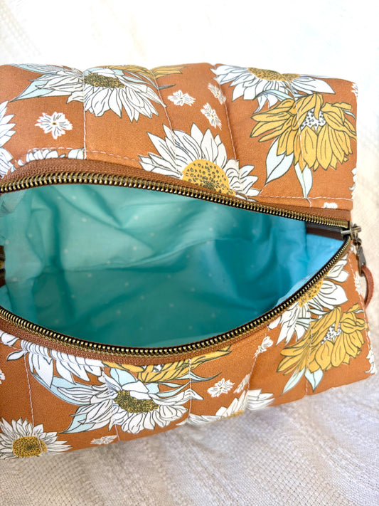 Boho Sunflower Quilted Makeup Bag